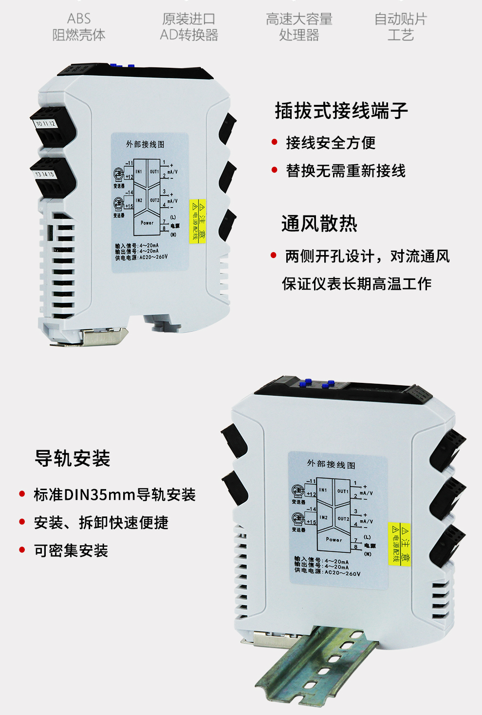 OHR-X33系列導(dǎo)軌式智能配電器給二、三線制變送器提供隔離的電源電壓,將變送器產(chǎn)生的直流電壓電流信號(hào),經(jīng)本隔離器轉(zhuǎn)換成所需的輸出信號(hào)至控制系統(tǒng)。寬電源設(shè)計(jì):20-260V交直流供電。配置高清顯示單元,通過輕觸按鍵設(shè)置每個(gè)通道的參數(shù)及每個(gè)通道之間的切換。