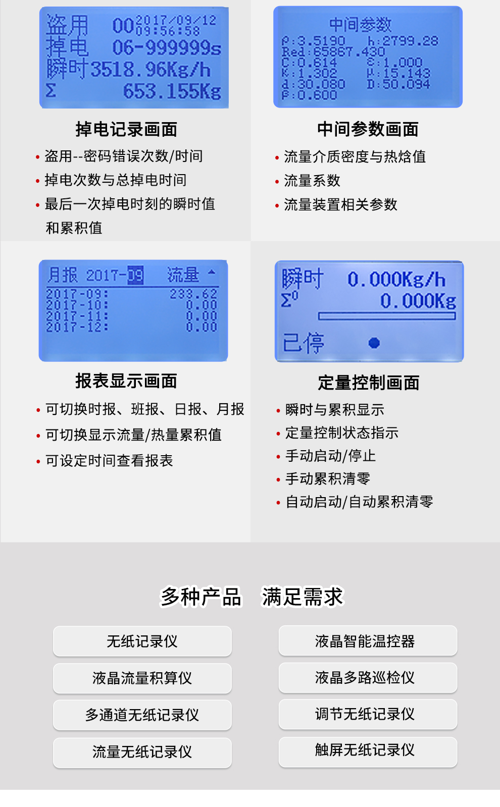 “傻瓜式”液晶流量積算儀接收來自流量傳感器信號(差壓、脈沖等)、溫度、壓力傳感器的補償信號實現(xiàn)對氣體、熱水和蒸汽流量進(jìn)行過程監(jiān)測,總量累積及定量控制。