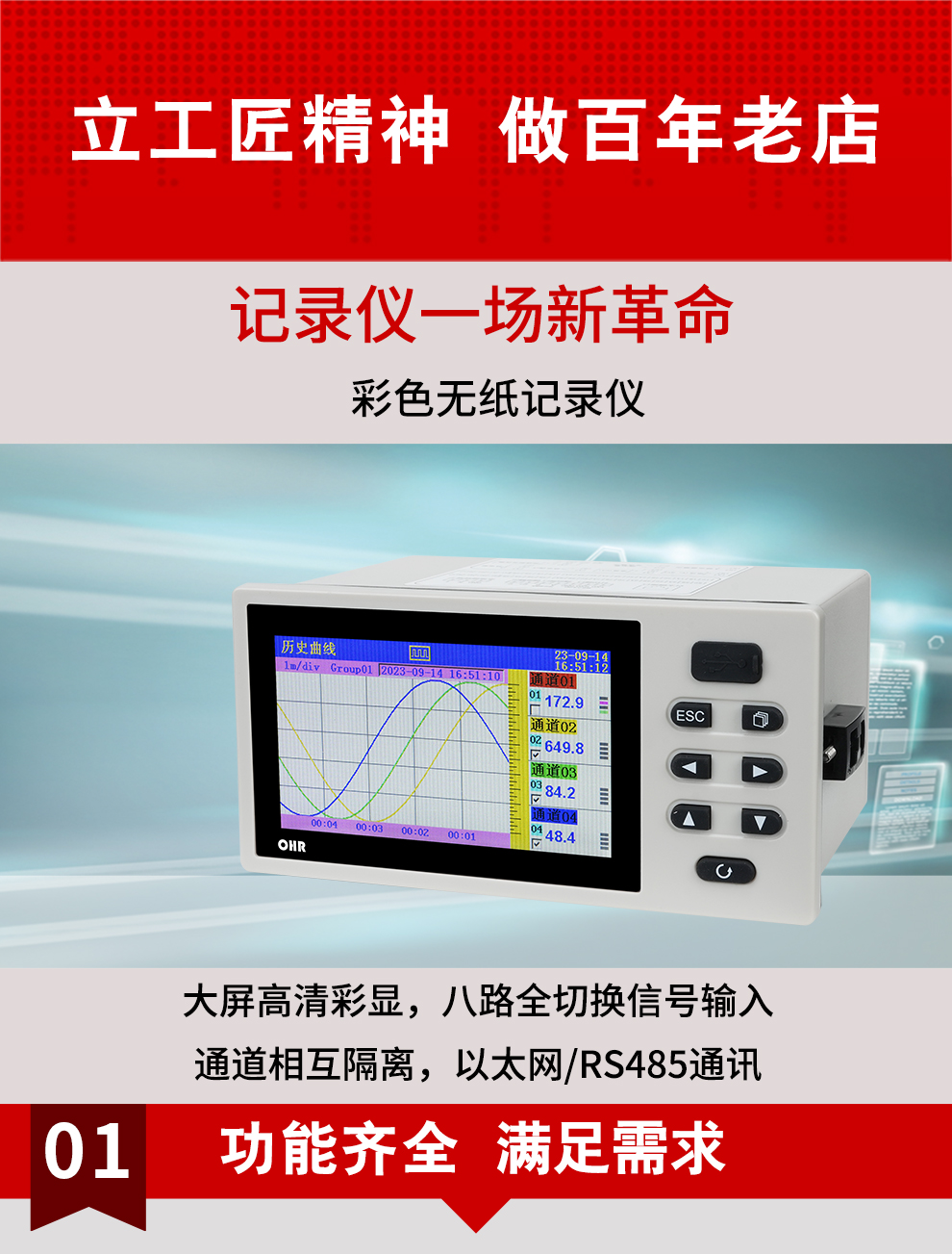 1、OHR-G100T系列彩色無紙記錄儀說明書(230925).pdf(鼠標(biāo)右鍵另存下載)