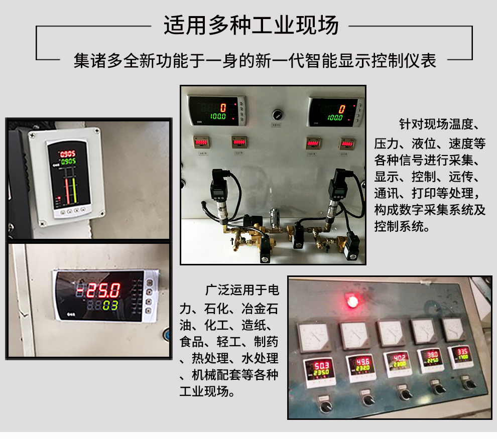 四回路測量顯示控制儀針對現(xiàn)場溫度、壓力、液位、速度等各種信號進行采集、顯示、控制、遠(yuǎn)傳、通訊、 打印等處理,構(gòu)成數(shù)字采集系統(tǒng)及控制系統(tǒng)。