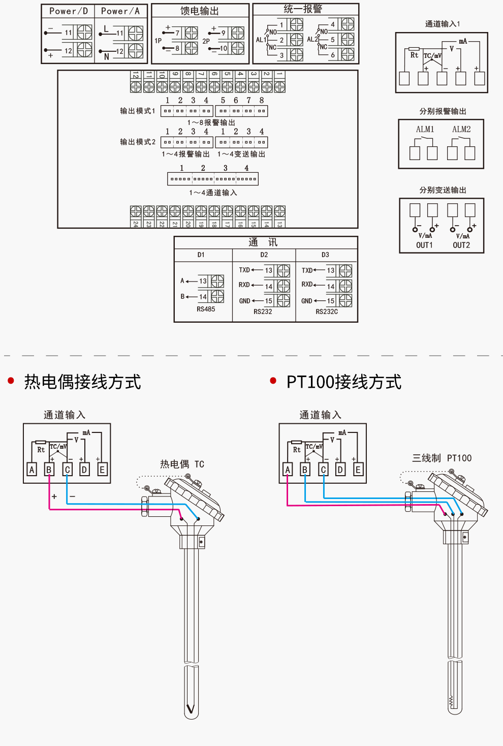 答:統(tǒng)一報警是在多通道輸入的情況下共用一組報警輸出,如:8路信號輸入,現(xiàn)在儀表巡檢顯示到第一通道,如果這時達到第一通道的報警值就輸出報警;然后儀表巡檢到第二通道,報警取消,如第二通道也達到第二路的報警設(shè)定值,則也報警輸出。記憶報警功能只在統(tǒng)一報警時有此功能,如這時設(shè)定了記憶報警,巡檢到第二路時不管第二路有沒到設(shè)定報警值,儀表都會保持住第一通道的報警。比如,第一路是上限報警,到第二路時第二路為下限報警,顯示儀表就會顯示上下限同時報警,報警只有等儀表巡檢一圈回到第一通道時,第一通道顯示值也沒有到達報警范圍時,這個上限報警才會取消,這時顯示儀表還保存住第二路的下限報警,也要等到巡檢到第二通道并且顯示值在正常范圍時才會取消報警。分別報警就是多通道儀表每通道都會有一組對應(yīng)的上下限報警輸出,互相不干擾,報警隨時根據(jù)輸入的信號值變化,不用等儀表巡檢到各個通道。