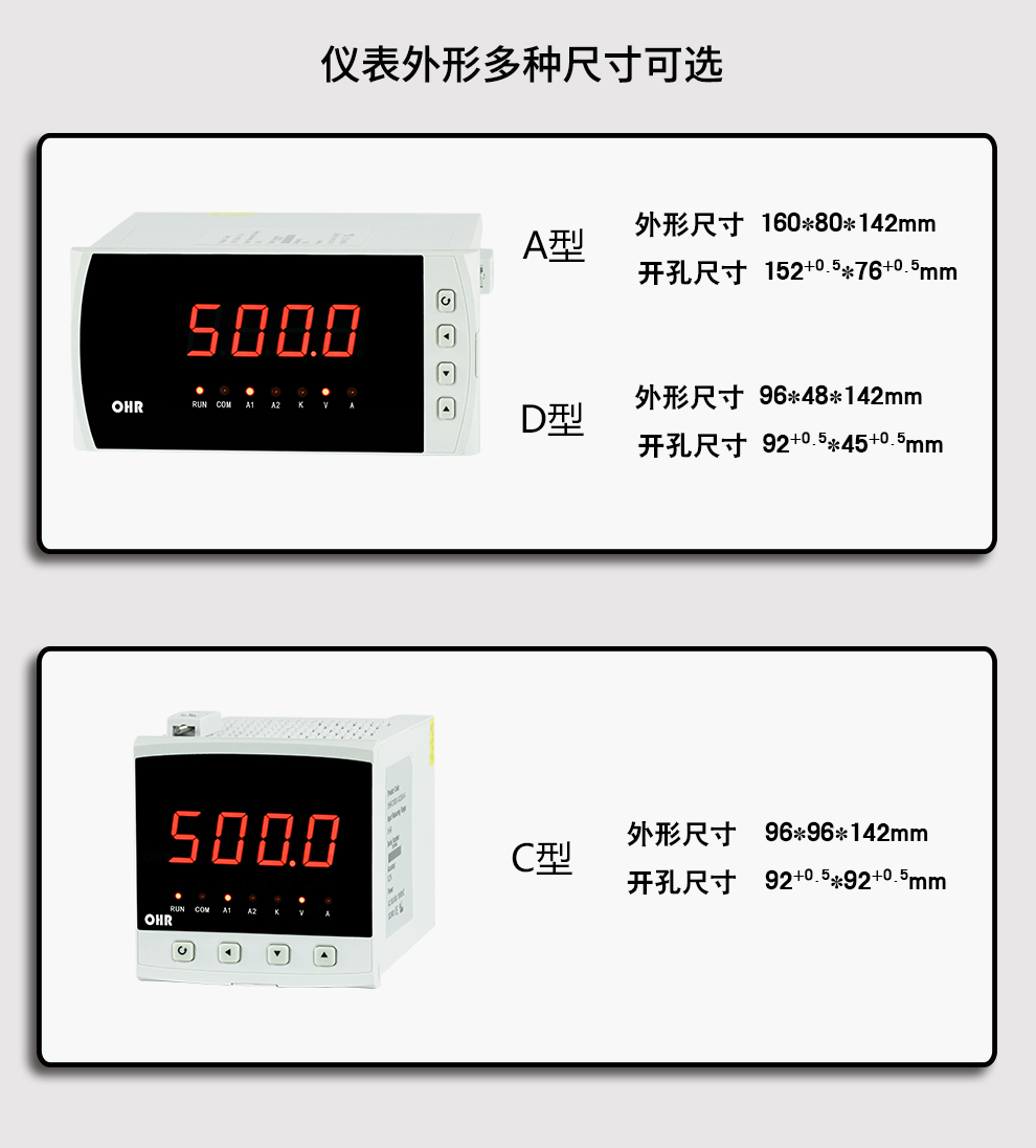 OHR-C200系列交流電壓/電流表為新 一代可編程智能儀表,它采用大規(guī)模集成電路,應(yīng)用數(shù)字采樣技術(shù),對單相電氣線路中的電壓、電流進行實時測量、顯示和控制,并通過RS485接口或模擬量變送輸出接口對被測量電量數(shù)據(jù)進行遠傳。
